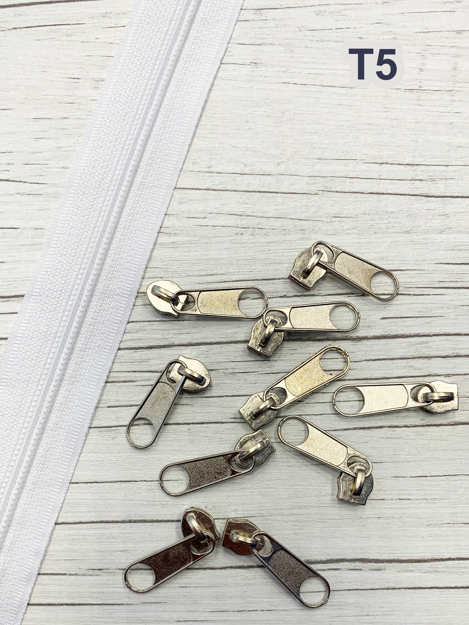 Купить Набор: Молния витая рулонная, Т5, 5 м., Белая и Бегунки, Т5, Галантерейные, 10 шт., Никель