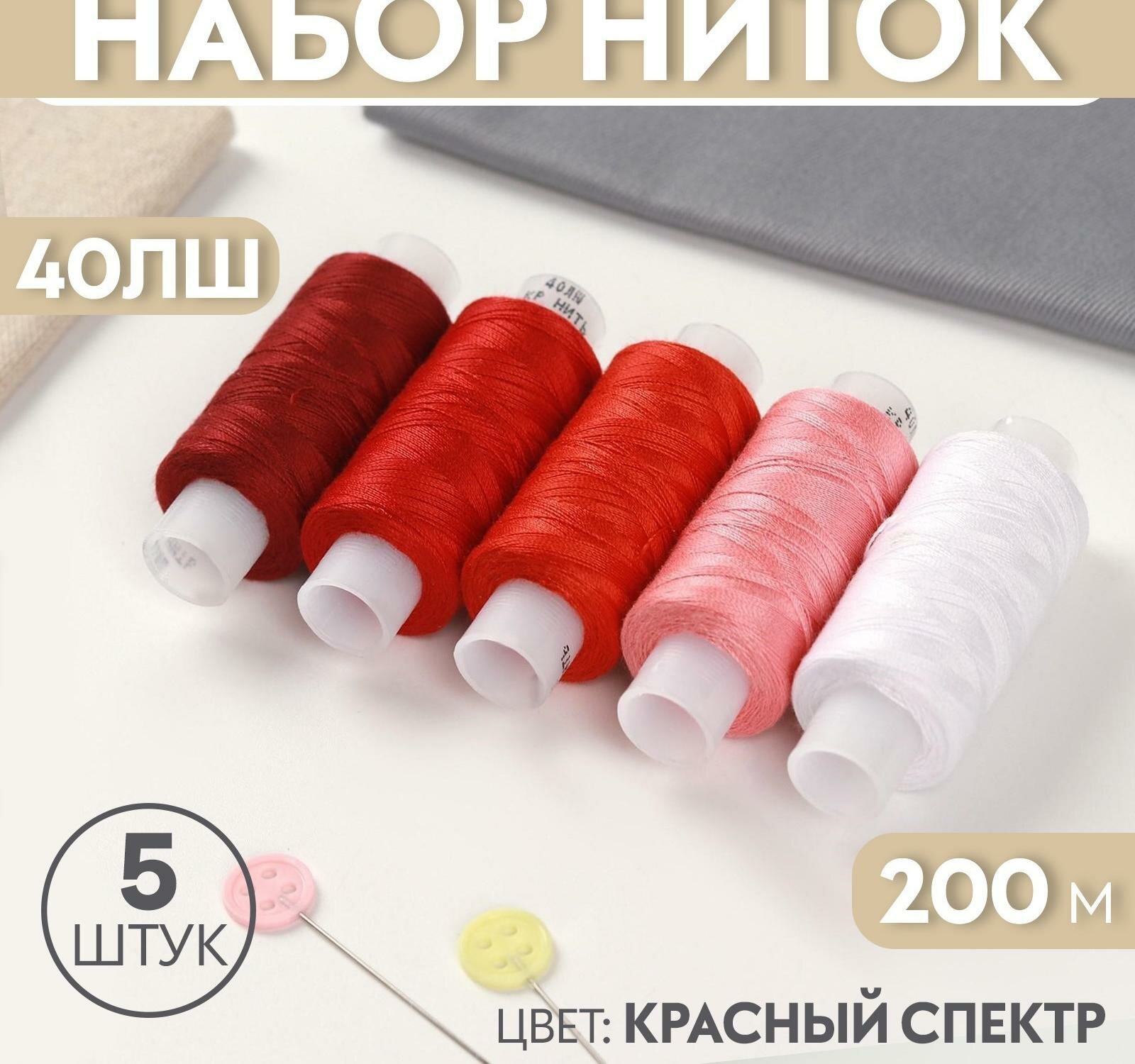 Набор ниток 40 ЛШ Красная нить Спектр, 200 м, ассорти, 5 шт (4 красный)
