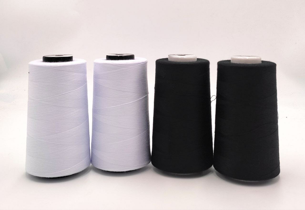 Купить Набор ниток 4 шт черные белые. Нитки для оверлока, швейной машинки