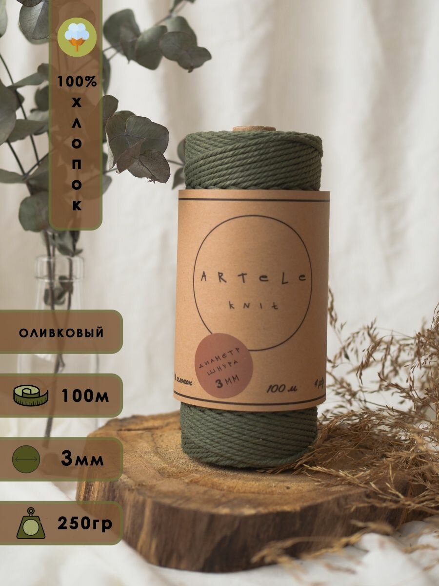 Хлопковый шнур для макраме и рукоделия Artele Knit, 3мм 100м