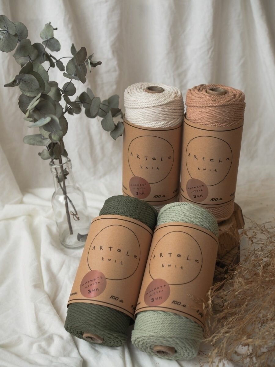 Хлопковый шпагат для макраме и рукоделия ARTELE Knit, 3мм интересное: