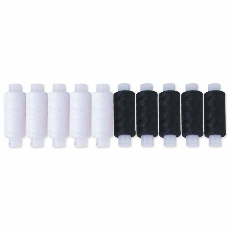 Набор швейных армированных ниток для шитья вручную и на машинках (5 белых и 5 черных цветов) по 150 м, прочные, 45ЛЛ, Остров Сокровищ, 662790