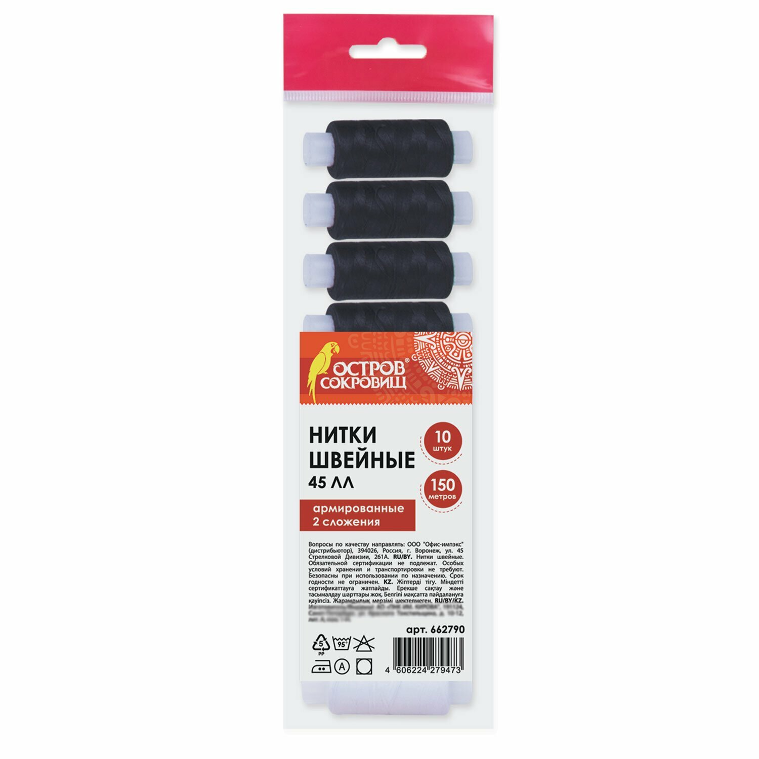 Швейные нитки, 1 штука черные из набора по 150 м, прочные, 45 ЛЛ, остров сокровищ, 662790