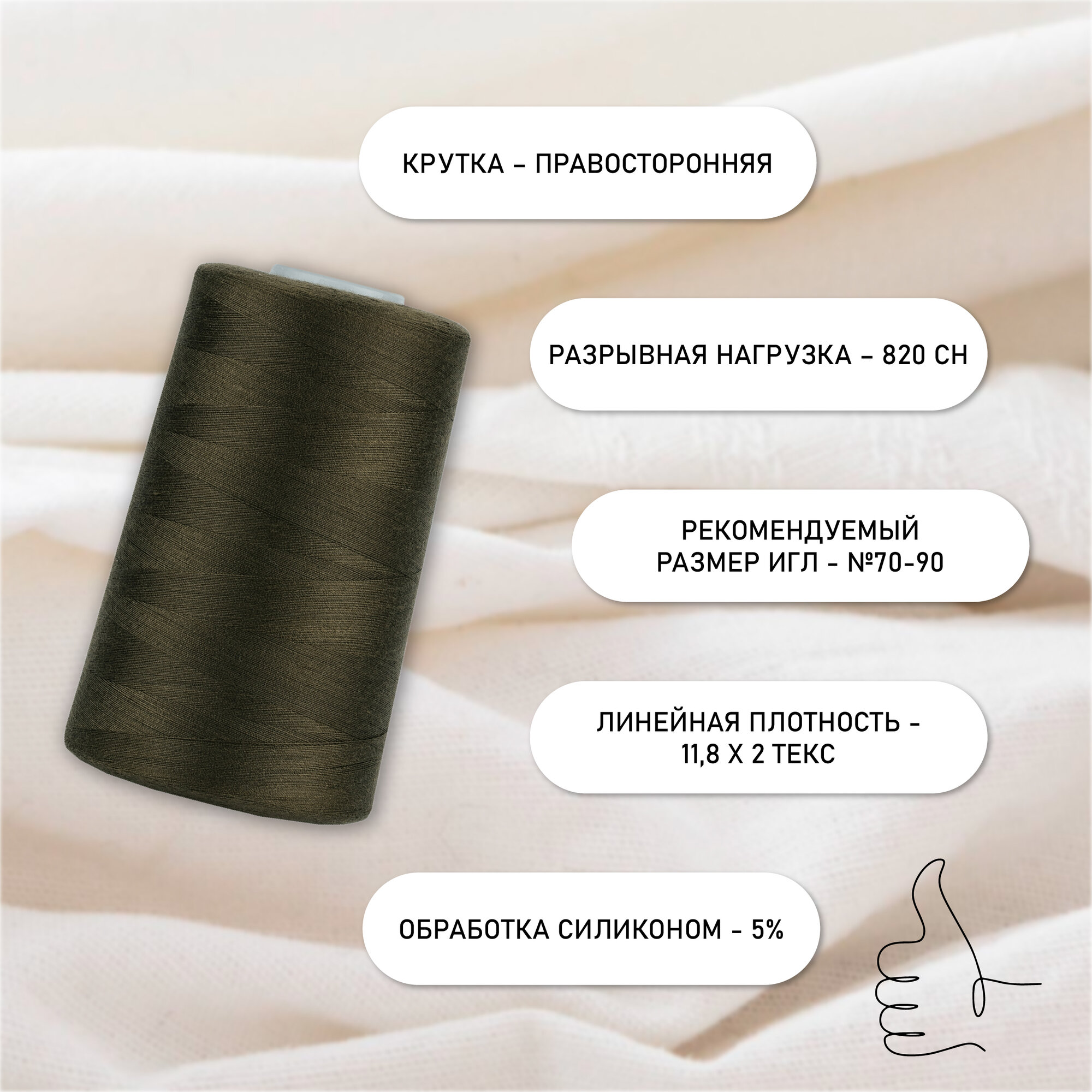 СохранитьНитки швейные 50/2 полиэстер 5000 ярд цв.484 хаки MAX интересное: