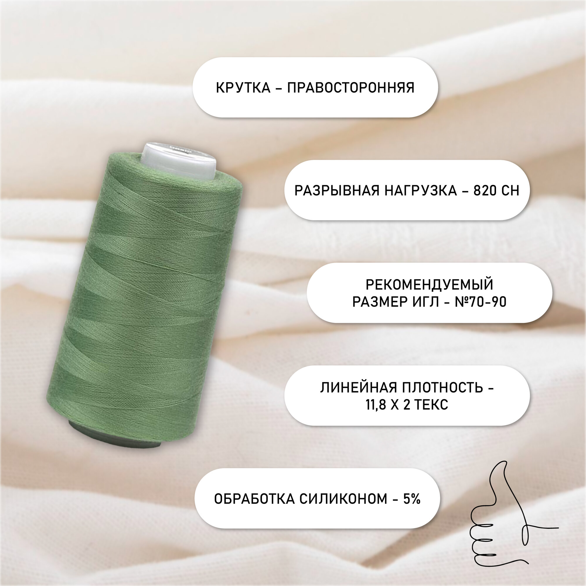 СохранитьНитки швейные 50/2 полиэстер 5000 ярд цв.446 св.олива MAX интересное: