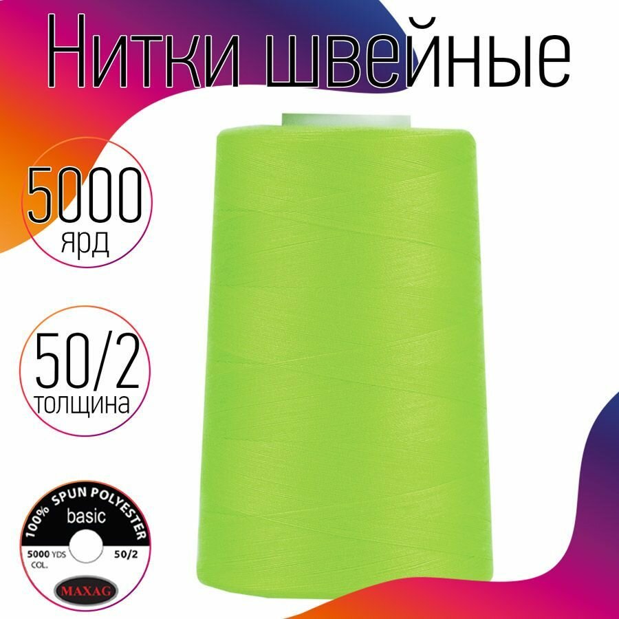 Нитки швейные 50/2 полиэстер 5000 ярд цв.628 салатовый (неон) MAX