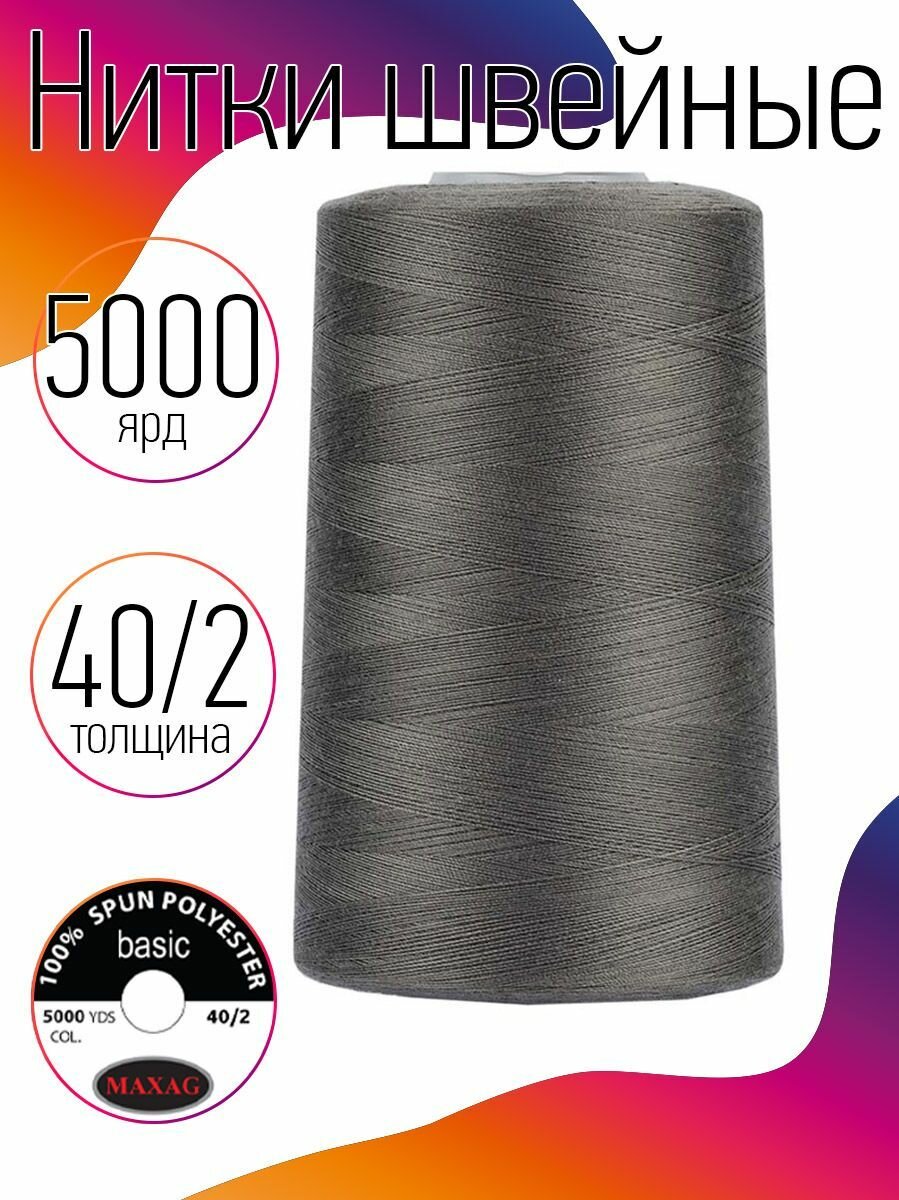 Купить Нитки швейные 40/2 полиэстер 5000 ярд цв.231 серый MAX