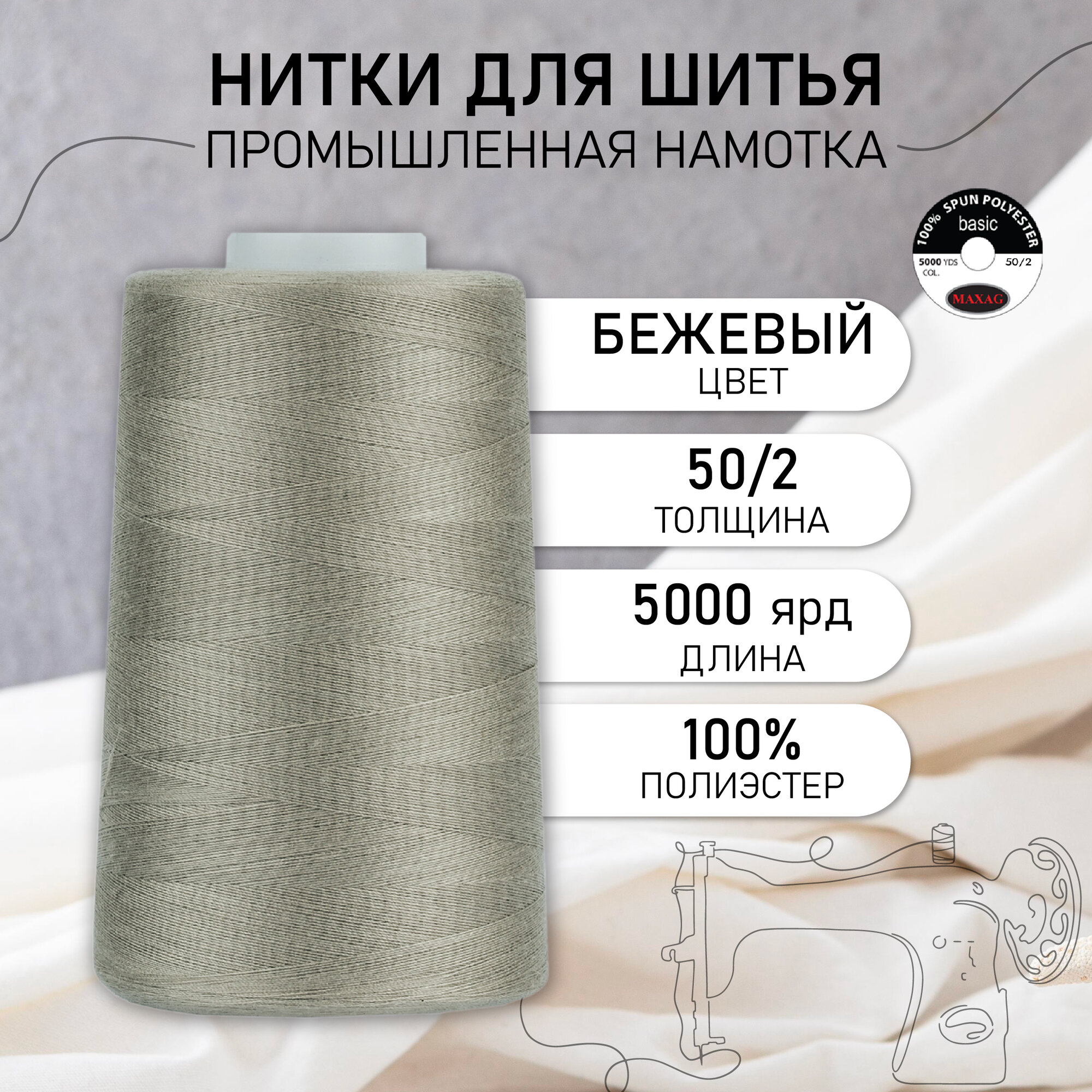 СохранитьНитки швейные 50/2 полиэстер 5000 ярд цв.455 бежевый MAX интересное: