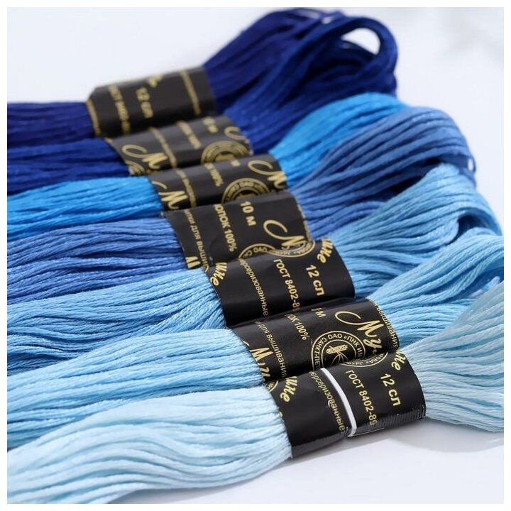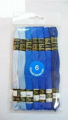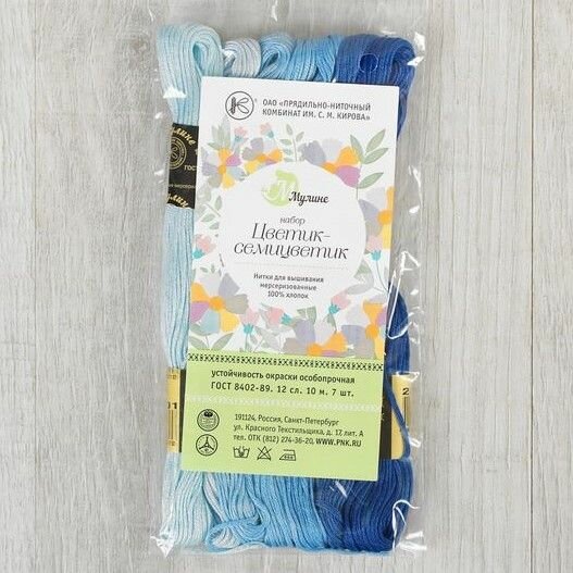 Набор ниток мулине "Цветик-семицветик", хлопчатобумажные, цвет: синий лепесток №6, 10 м, 7 шт
