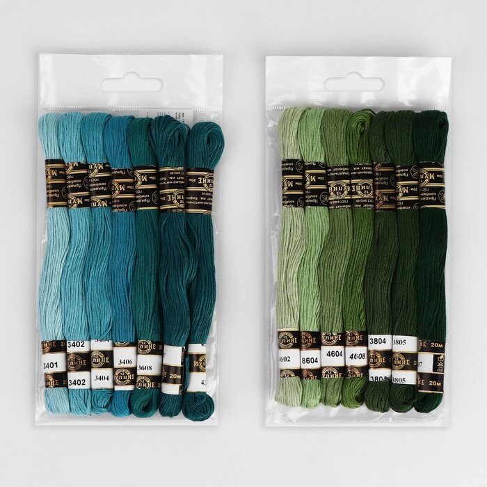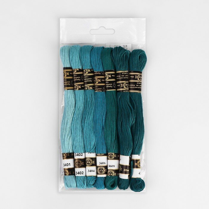 Набор мулине "ПНК им. Кирова" "Цветик-Семицветик" 100% хлопок 7 цв. x 10 м Набор №5 зеленая гамма