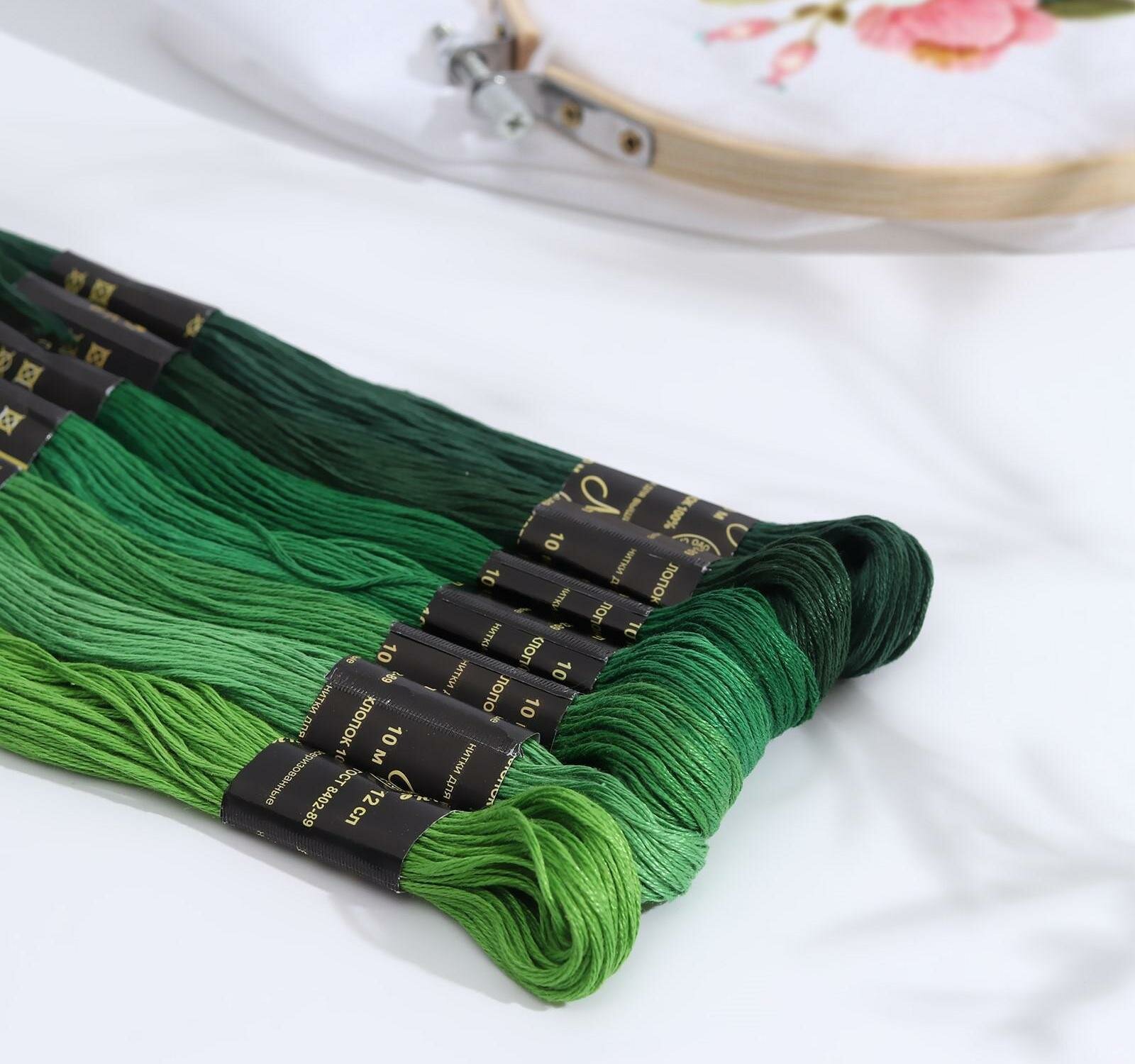 Набор ниток мулине "Цветик-семицветик", хлопчатобумажные, цвет: зеленый лепесток №5, 10 м, 7 шт