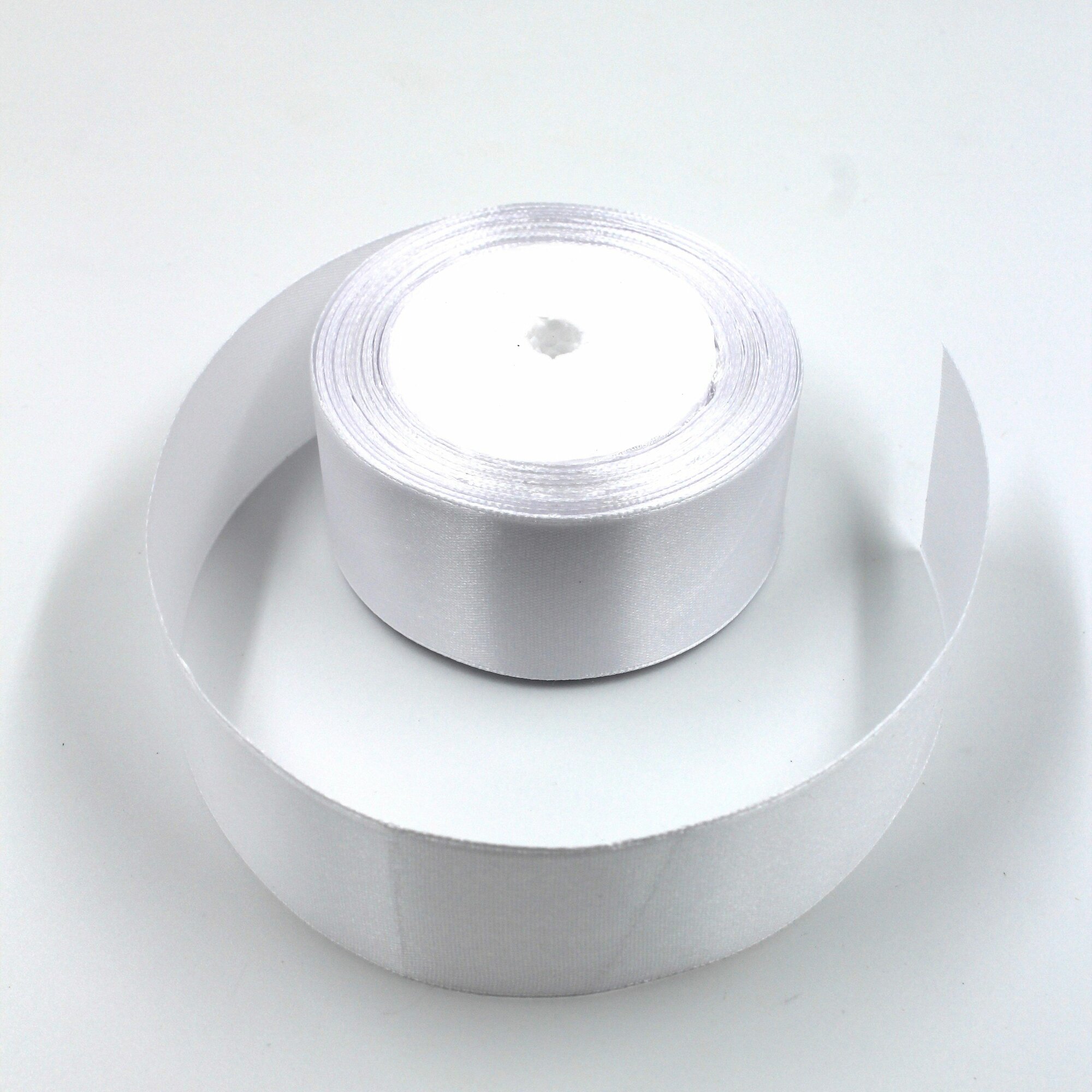 Лента атласная 2,5см х 23м белая, упаковочная для рукоделия, для декора и творчества, шитья, упаковки и оформления подарков, 25мм