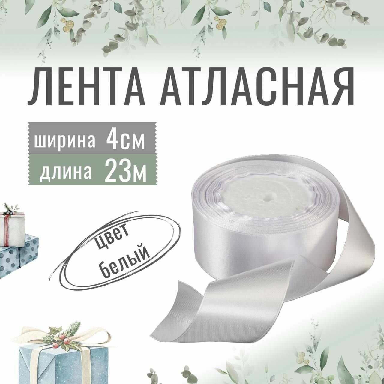 Купить Лента атласная 4см х 23м белая, упаковочная для рукоделия, для декора и творчества, шитья, упаковки и оформления подарков, 40мм
