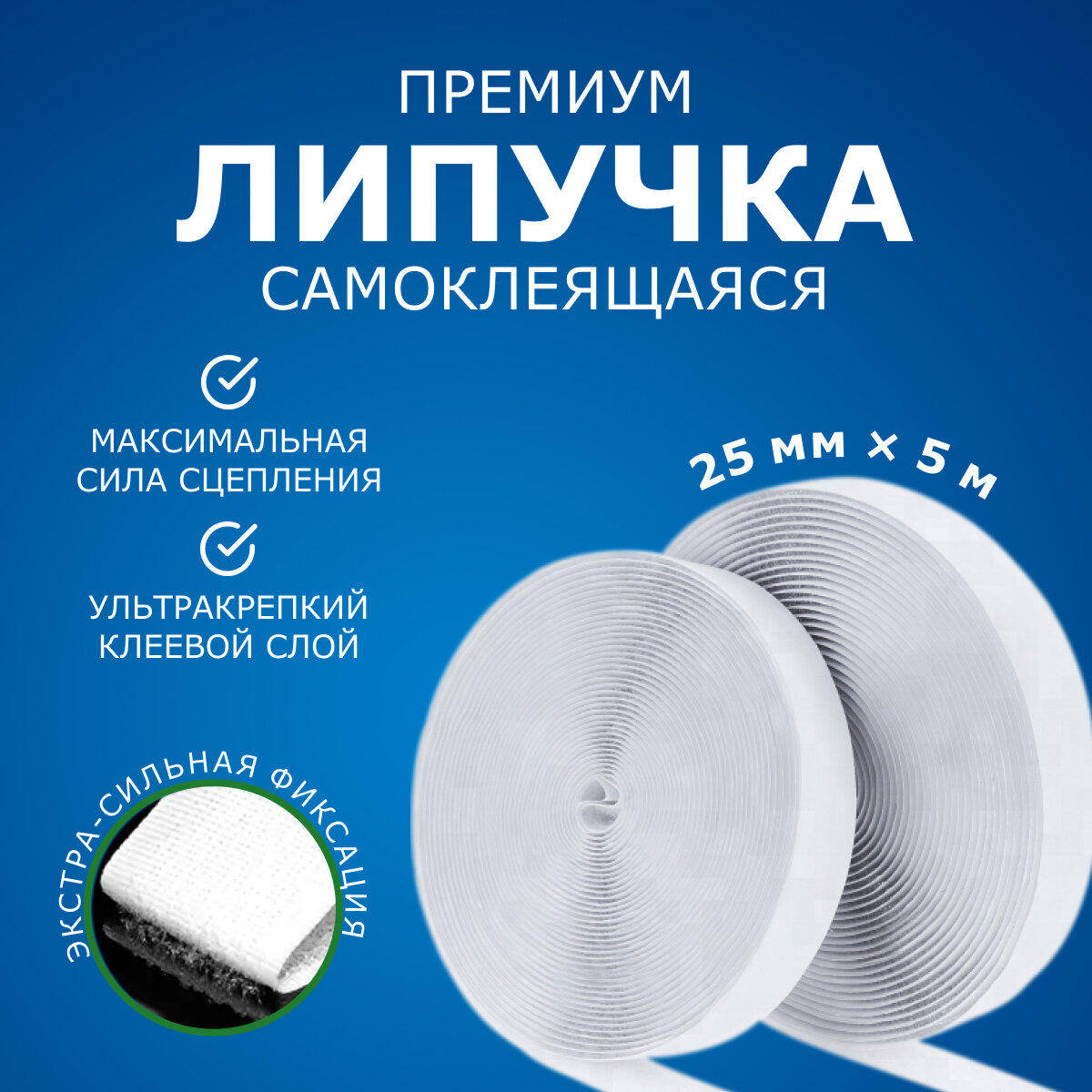 Лента-липучка самоклеящаяся "Липучкин", 25мм x 5м, белая, усиленная