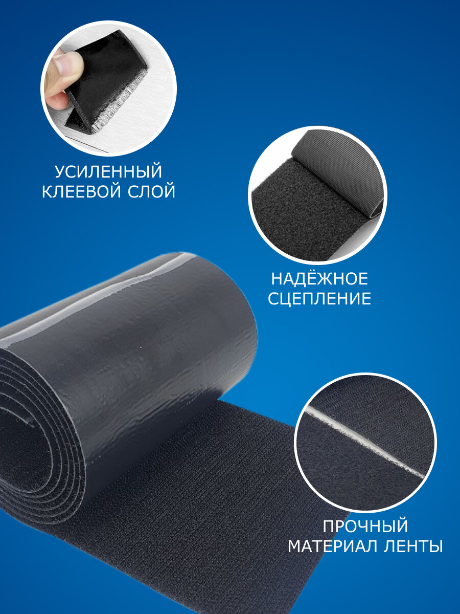 Лента липучка самоклеящаяся черная 25 мм длина 5м для штор, тюля, авто, ковриков, 2 части с клеевым слоем