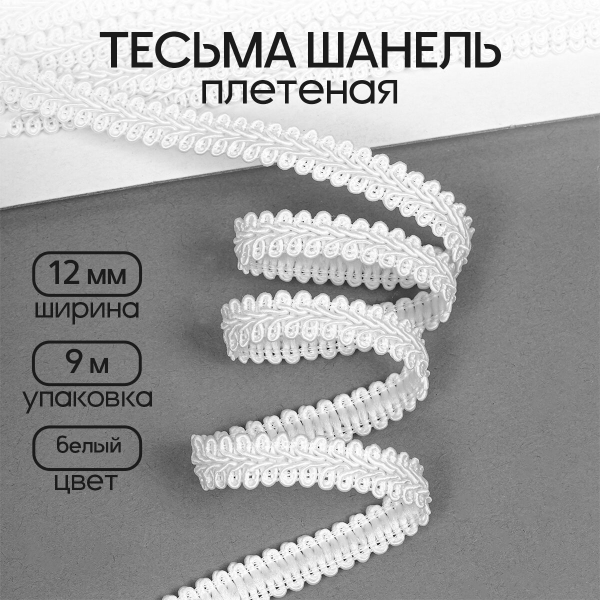 Тесьма Шанель плетеная TBY шир.12мм 0384-0018 цв. белый уп.9м