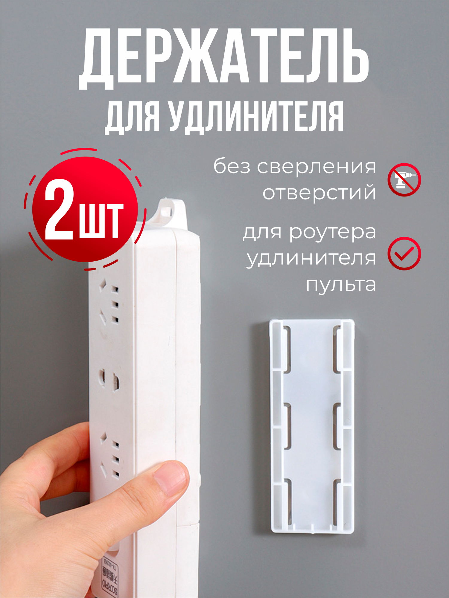 Самоклеящийся держатель для удлинителя ( комплект 2 штуки), цвет - белый интересное: