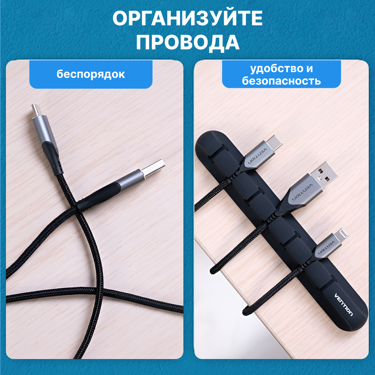 СохранитьVention Держатель для проводов, органайзер для кабелей на 5 разъема черный, крепление силиконовое на скотче арт. KBRB0 интересное: