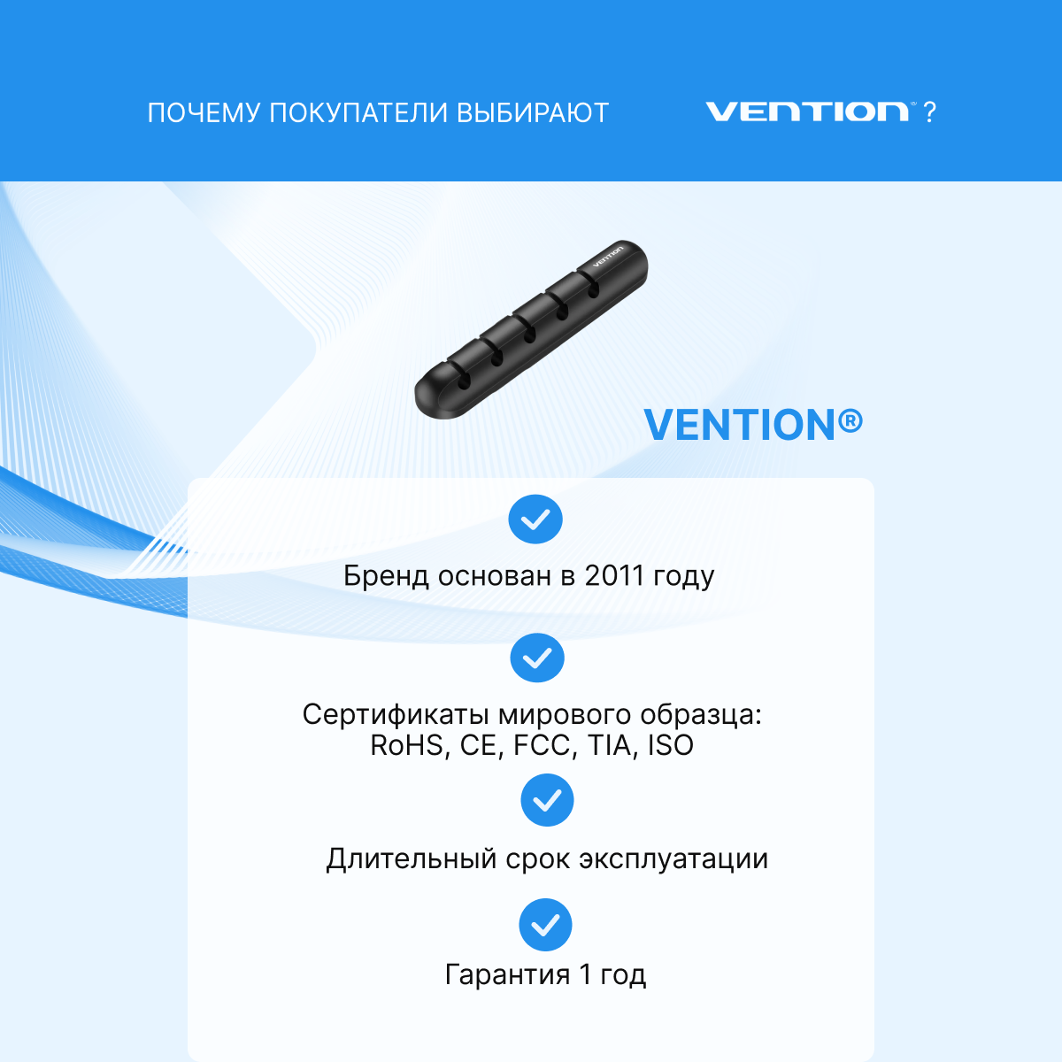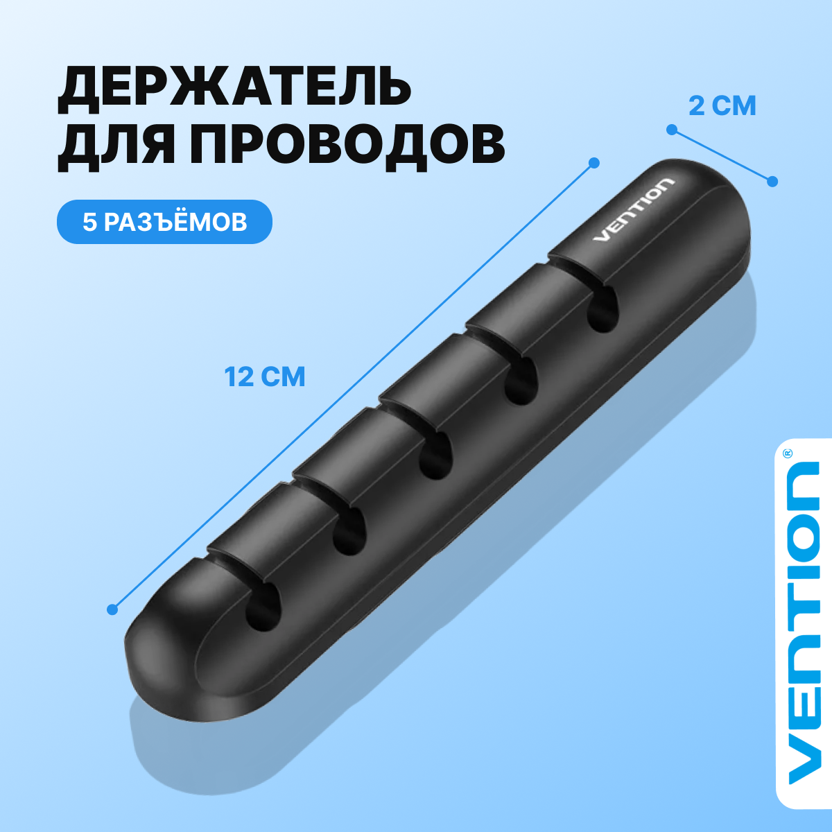 Купить Vention Держатель для проводов, органайзер для кабелей на 5 разъема черный, крепление силиконовое на скотче арт. KBRB0