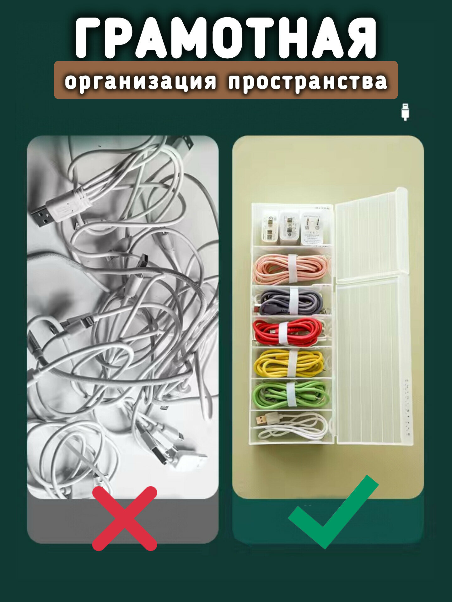 Органайзер для хранения проводов и зарядок / мелочей / с крышкой / коробка для хранения / контейнер интересное: