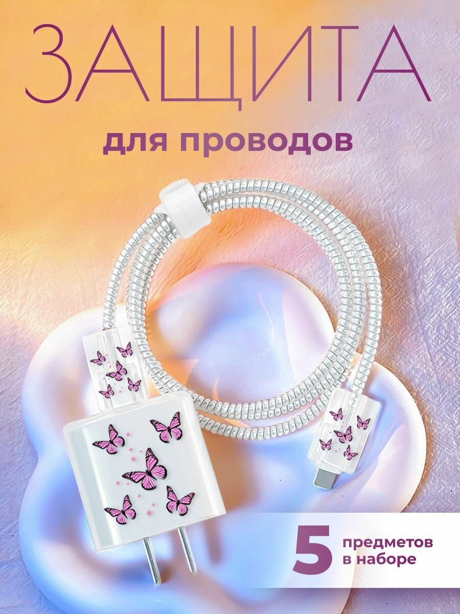 СохранитьЗащитный чехол MIME для зарядки, защита провода, для iPhone 20W/18W, белый с бабочками интересное: