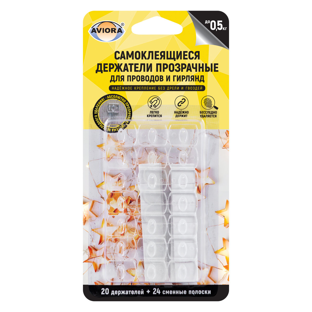 Держатель самоклеящийся для пр-ов и гирлянд, прозр, 20шт/уп, AVIORA 302-202
