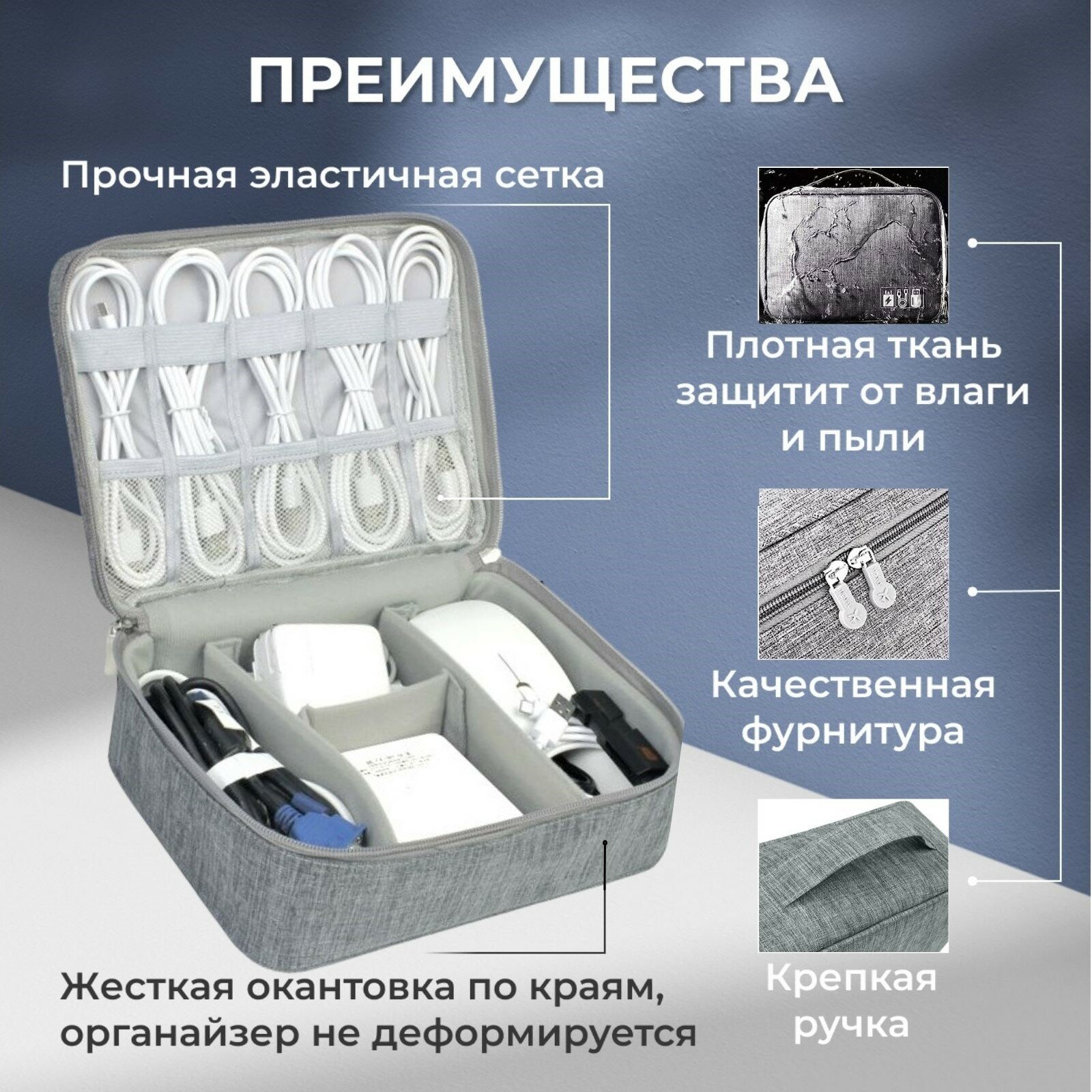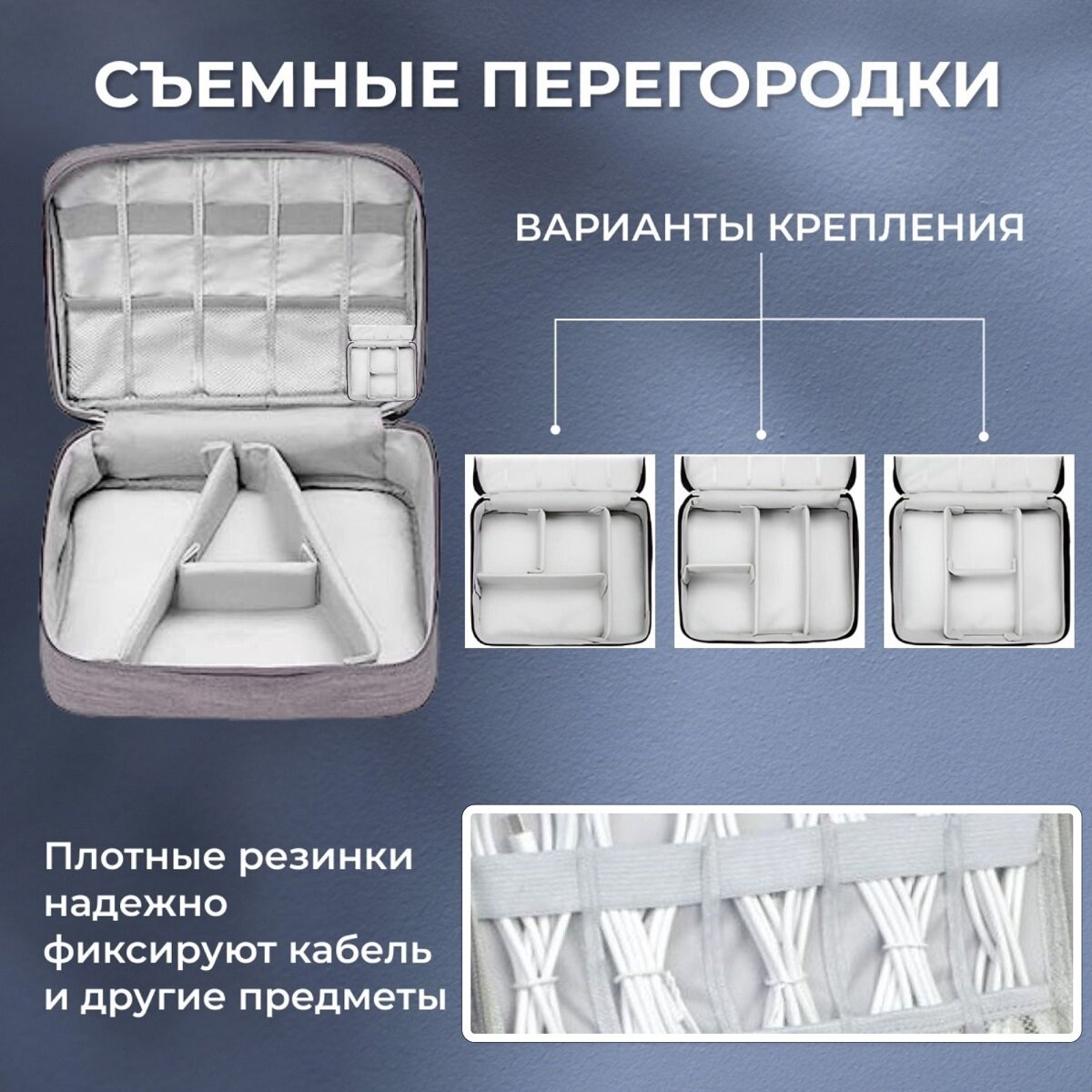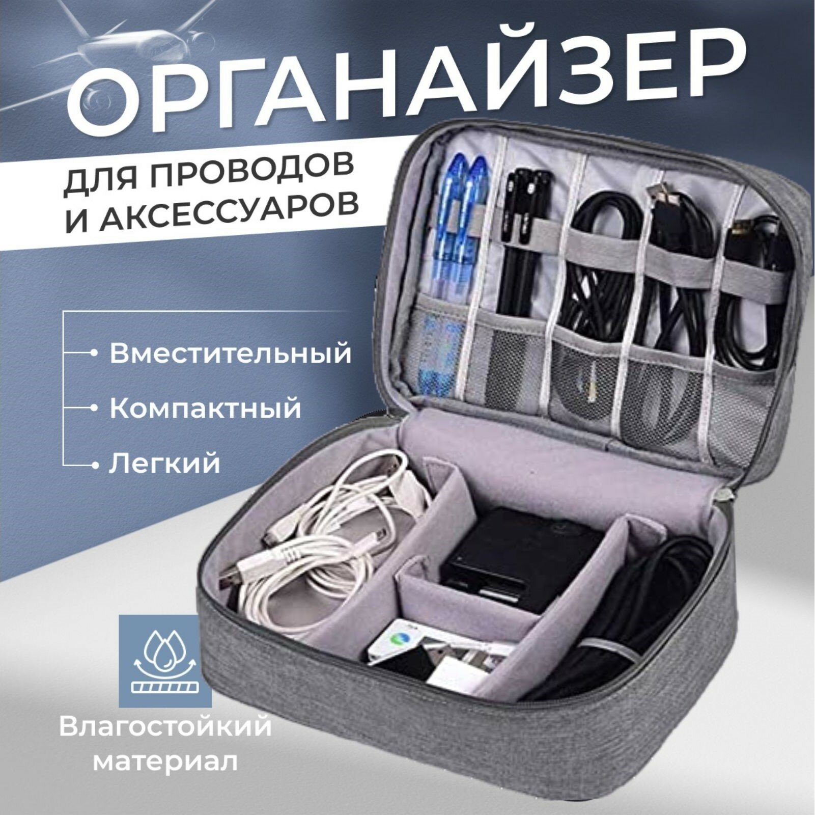 Органайзер для хранения проводов, кабелей, аксессуаров и мелочей дома или в дороге, серый интересное: