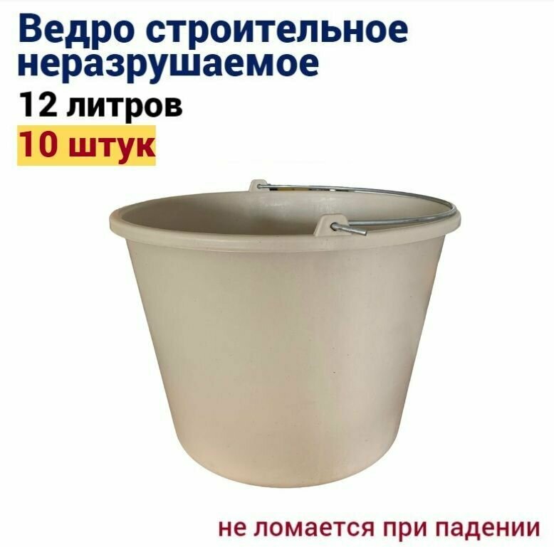 Ведро строительное неразрушаемое 12 л, 10 штук интересное: