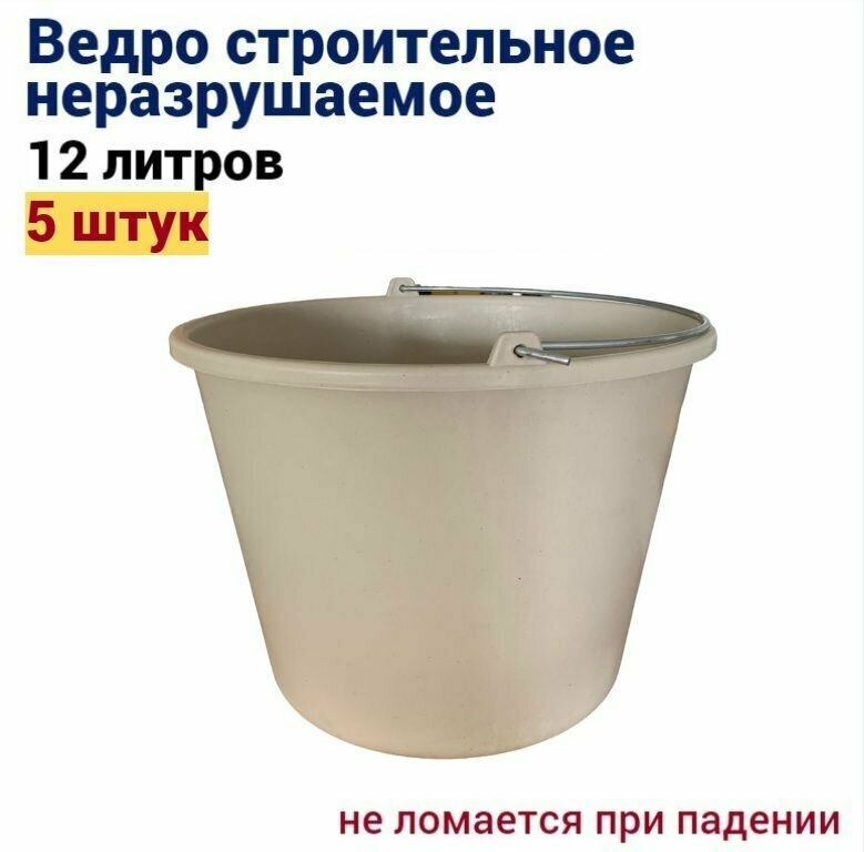 Ведро строительное неразрушаемое 12 л, 5 штук интересное: