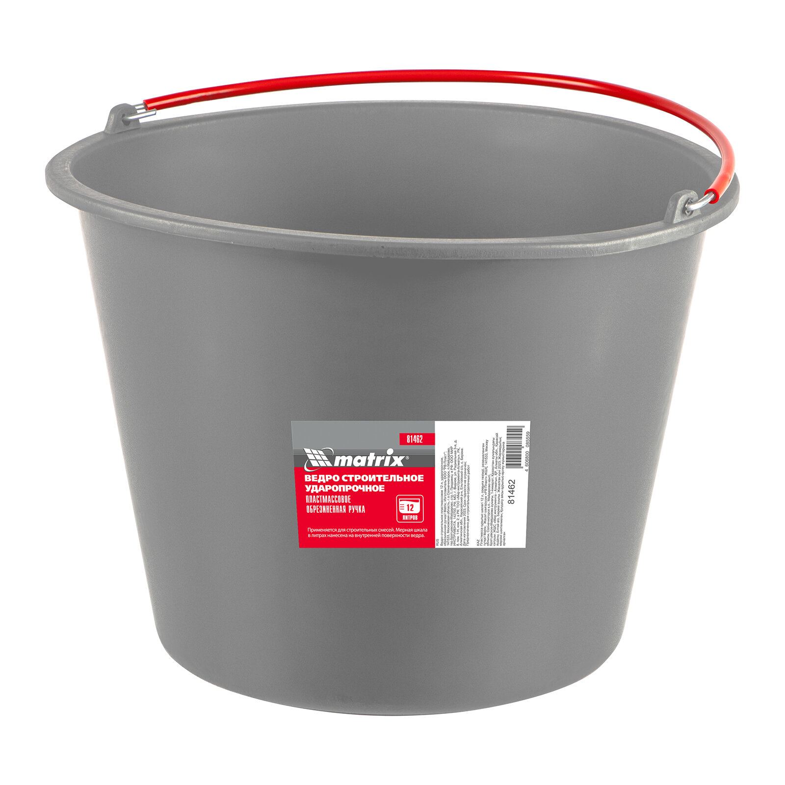 Matrix Ведро строительное пластмассовое 12 л, ударопрочное, обрезиненная ручка 81462 .
