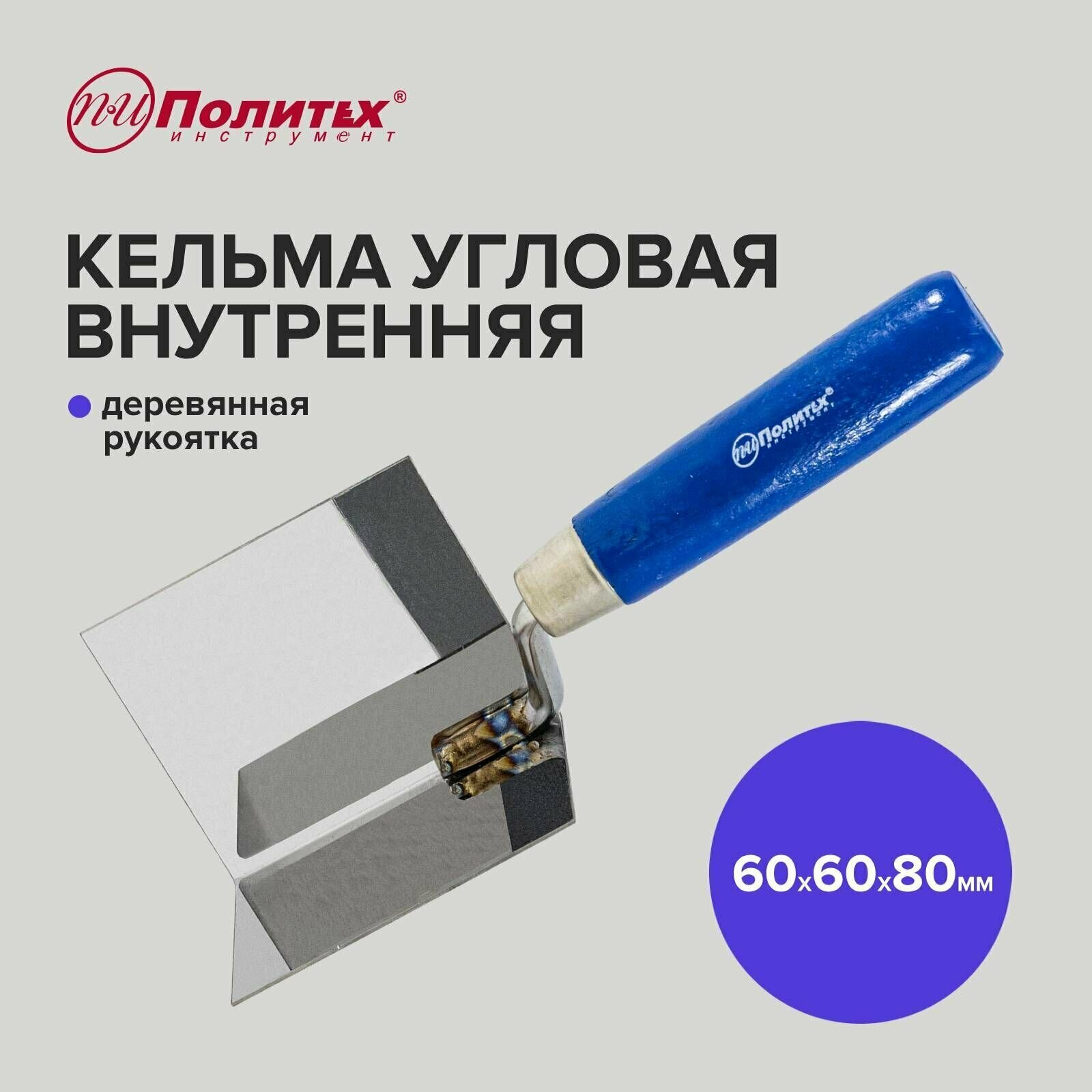 Кельма угловая внутренняя 60 х 60 х 80 мм с деревянной ручкой, Политех Инструмент интересное: