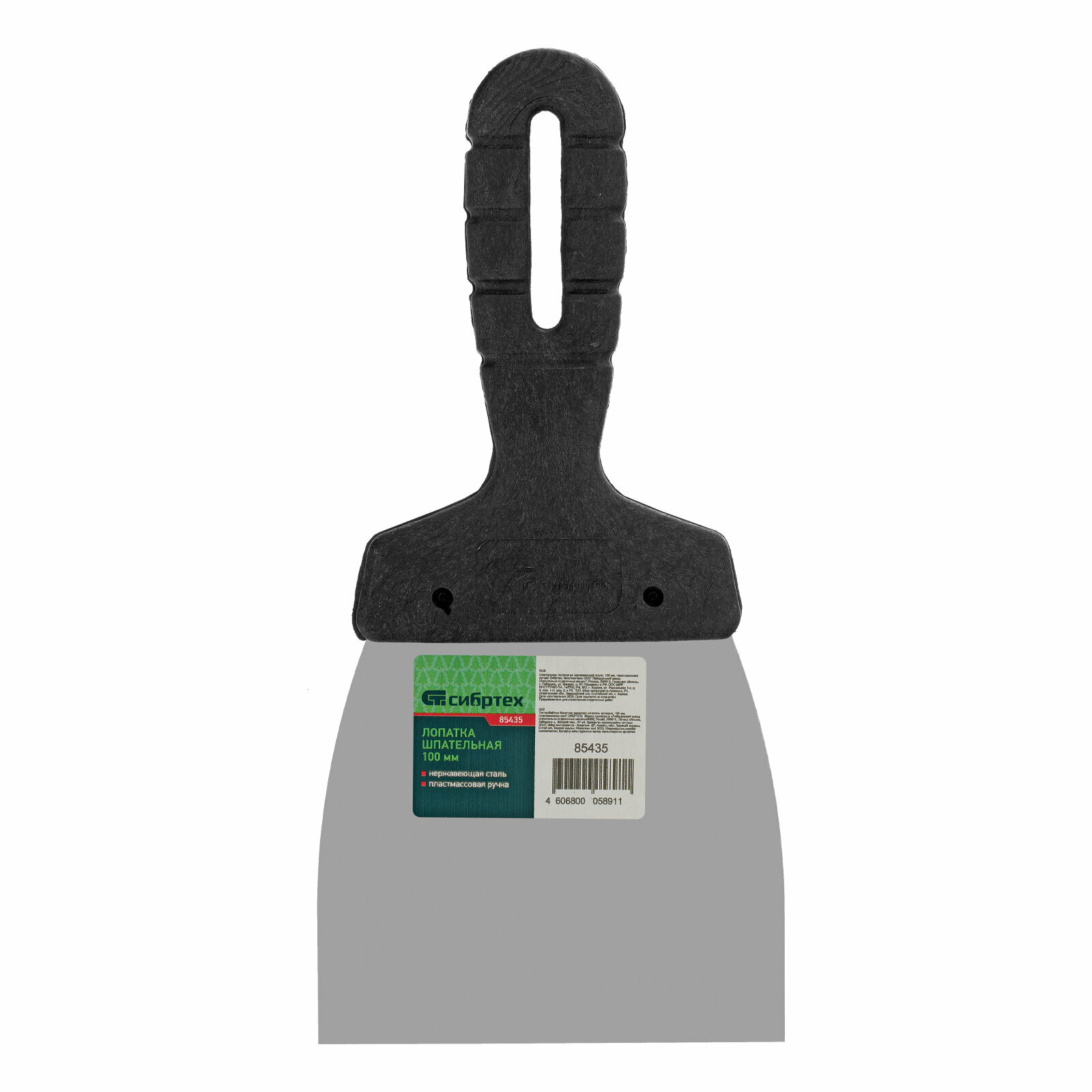 Шпательная лопатка из нержавеющей стали, 100 мм, пластмассовая ручка Сибртех, 85435