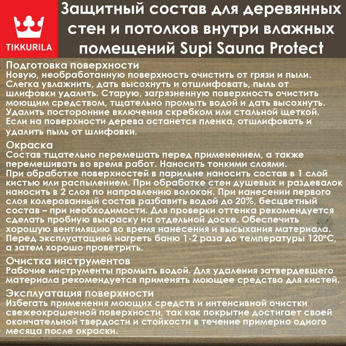 Защитный состав для стен и потолков в бане и сауне Tikkurila Supi Sauna Protect 2.7 л интересное: