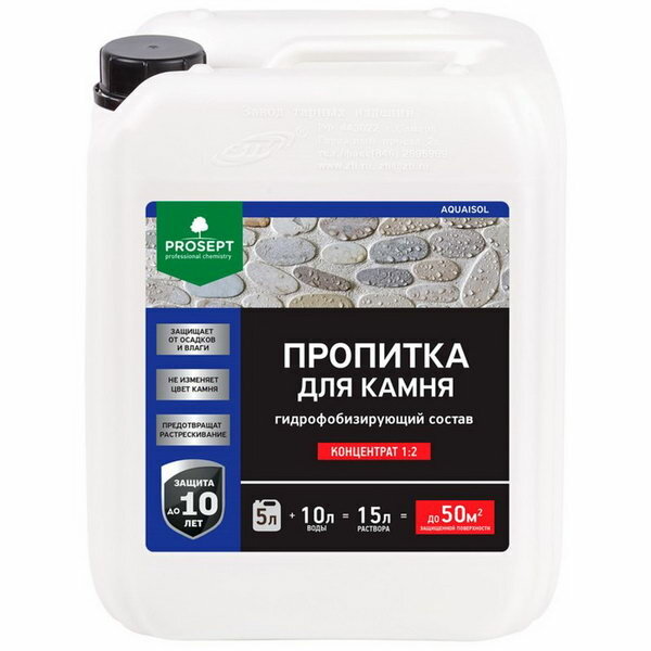 Пропитка для камня AQUAISOL PROSEPT - гидрофобизирующий состав 1:2, 1л