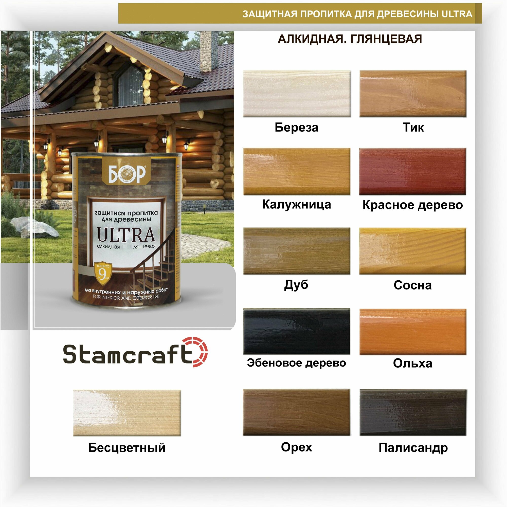 Защитная пропитка для дерева БОР Ultra глянцевая / Калужница 0,75кг