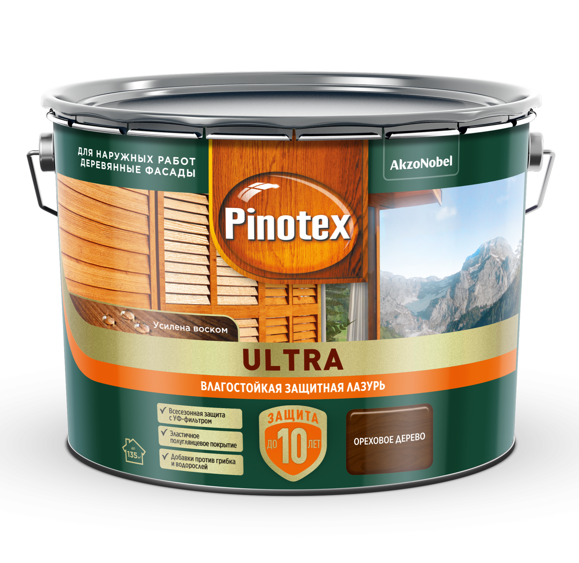 Купить PINOTEX ULTRA RU лазурь влагостойкая ореховое дерево 9 л