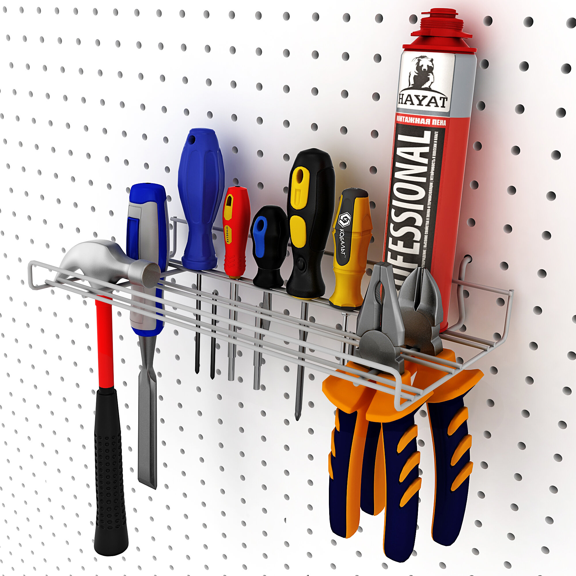 Металлическая полка и 3 красных лотка по 1 литру, 30*17*8 см. Для хранения мелких предметов на перфорированной панели.