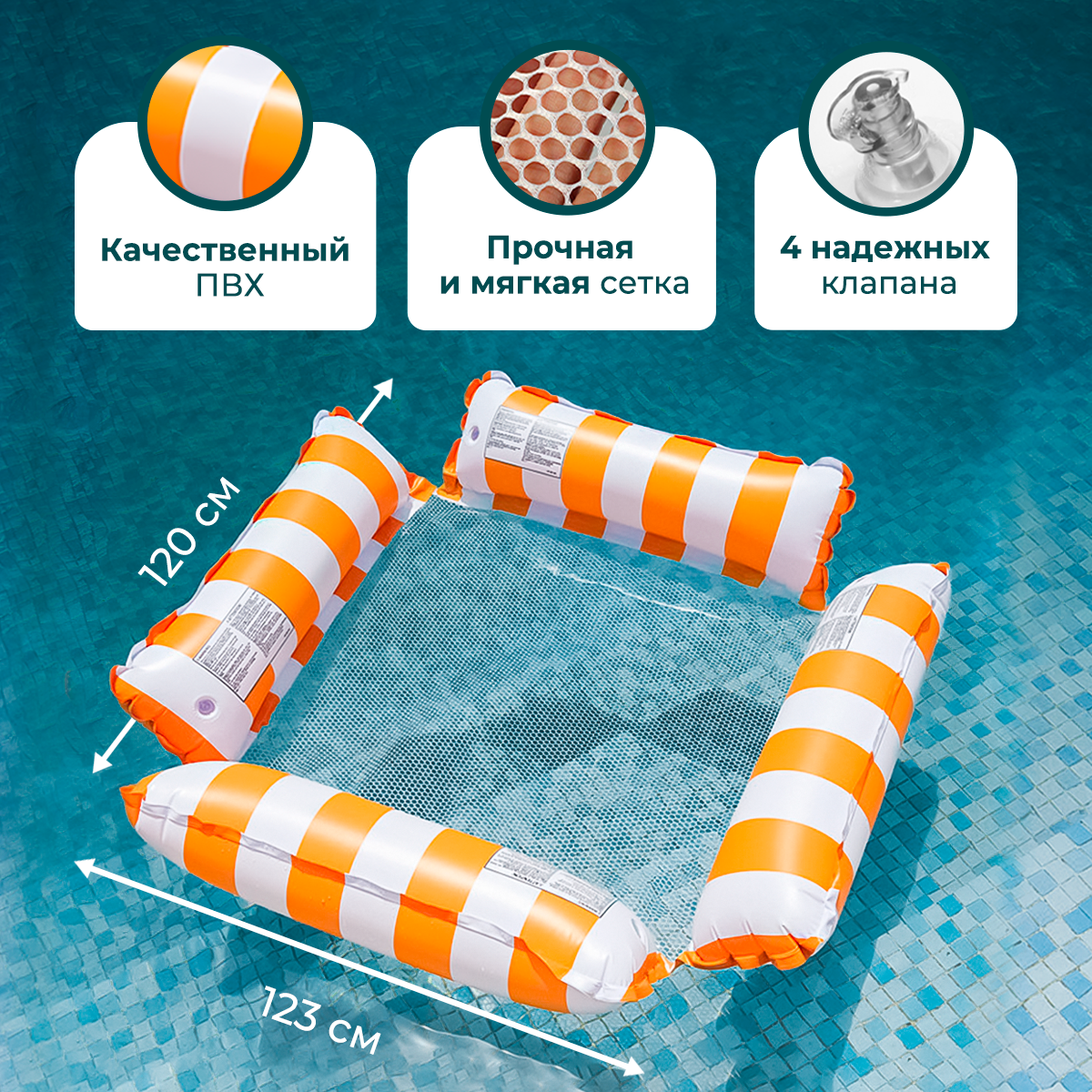 Купить Матрас надувной сетка + мяч пляжный для игр в воде В подарок! Оранжевый. Кресло гамак с подушкой для купания. Круг для плавания взрослый и детский. Плот для бассейна. Ламзак для загара на море. Шезлонг поплавок.