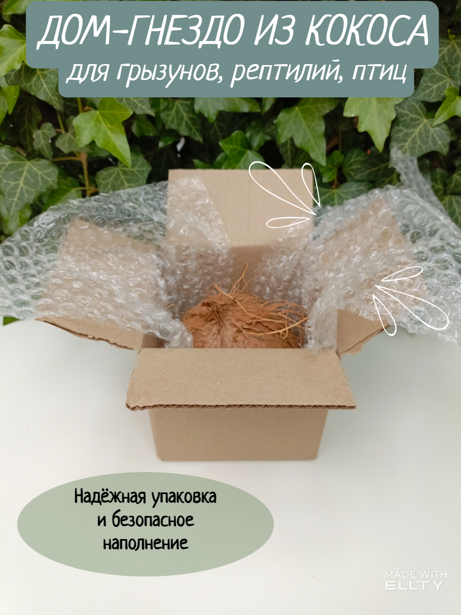 Дом из кокосовой скорлупы для животных шлифованный интересное: