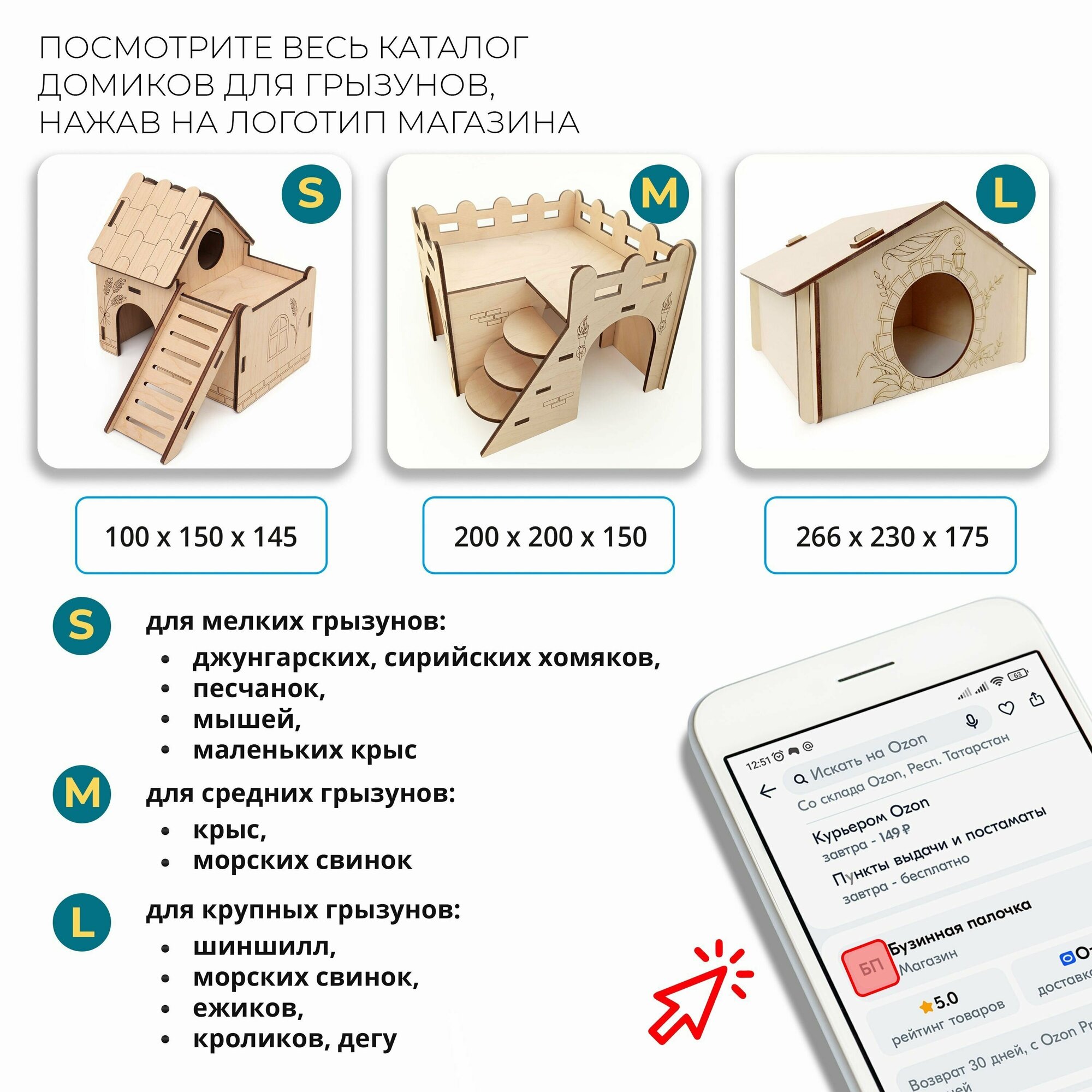 Домик для крыс, морской свинки, шиншилл, кролика, ежа, дегу, крупных грызунов, деревянный 266х230х175 интересное:
