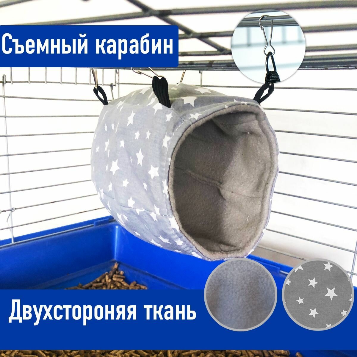 | Подробная комплектация | Гамак для грызунов -1 шт. Карабин для крепления на - 4 шт. |