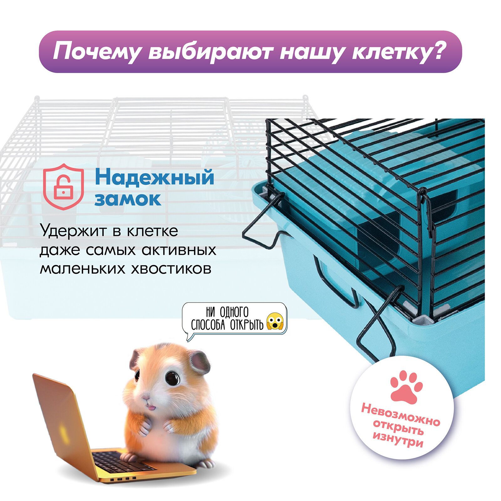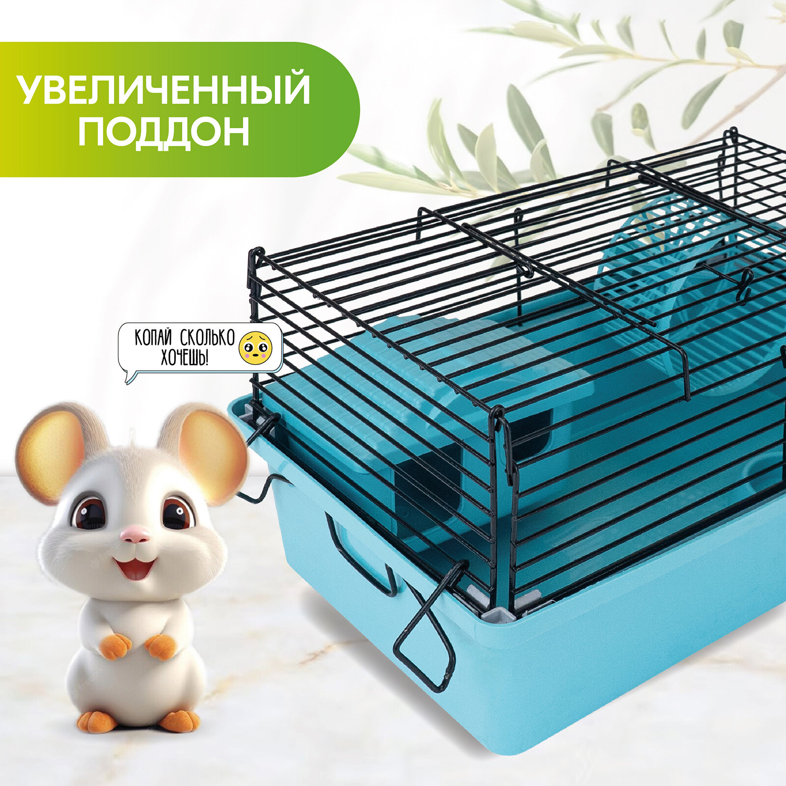 Клетка-мини д/мелких грызунов "PetTails", складная, шаг прута до 9,5мм, 28*17*h18см (+домик, миска, колесо) бирюзовая интересное: