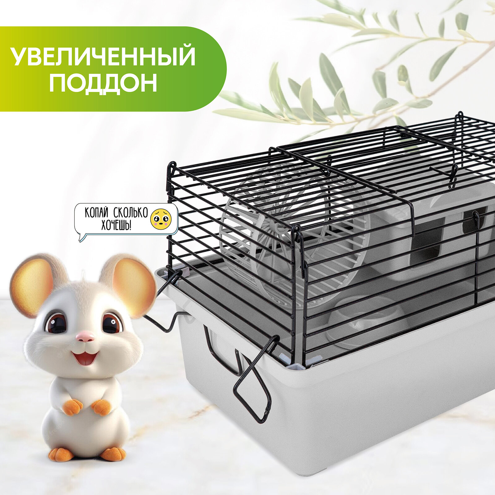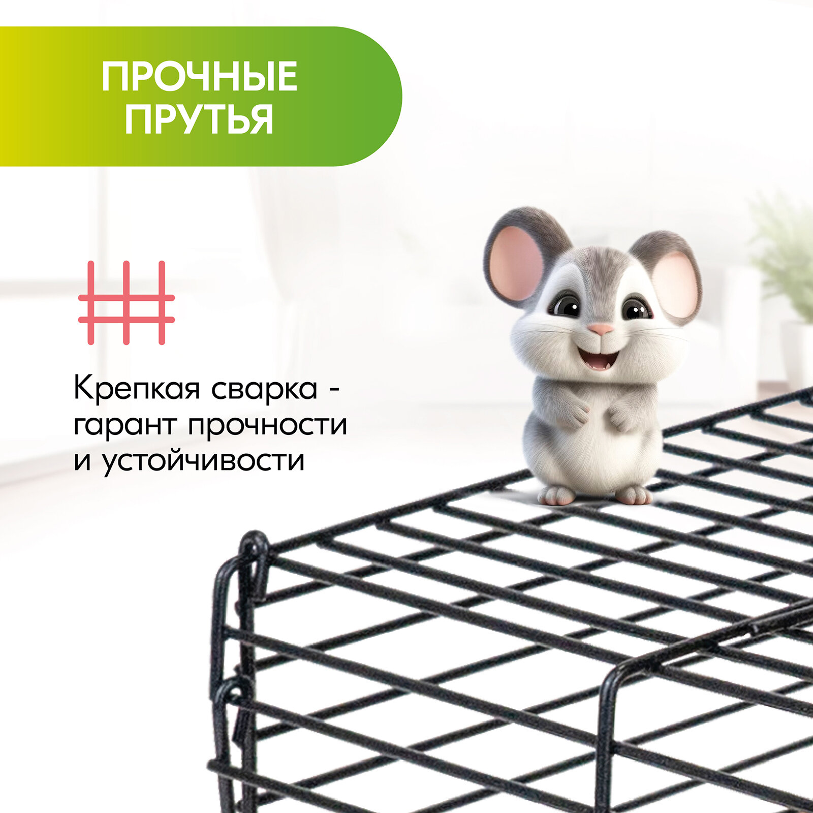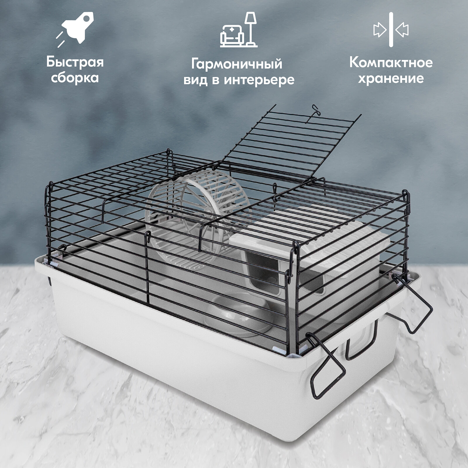 Купить Клетка-мини д/мелких грызунов "PetTails", складная, шаг прута до 9,5мм, 28*17*h18см (+домик, миска, колесо) светло-серая