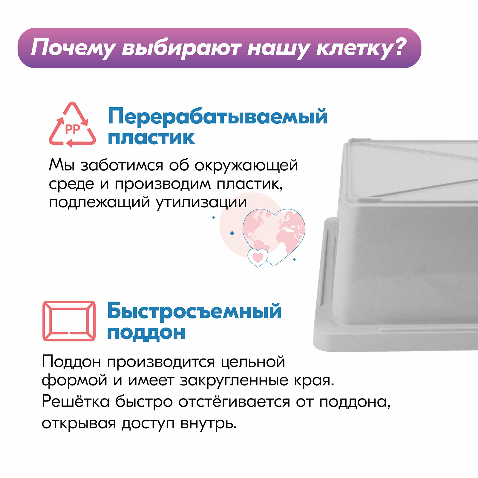 FERPLAST Клетка для кроликов и морских свинок Cavie 80 (сиреневый поддон/белые прутья) 77х48х42 см. (57054070)