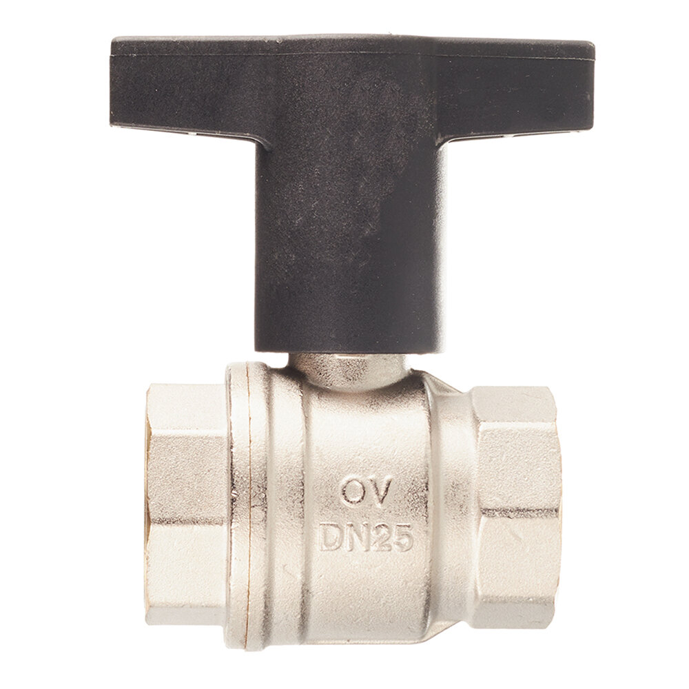 Кран шаровый с внутренней резьбой ВВ 1" ручка пластиковая удлинённая Никель Oventrop Optibal 1077108