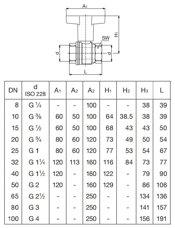 | Весогабариты | Ду 15: строительная длина 50 мм, строительная высота 68 мм |