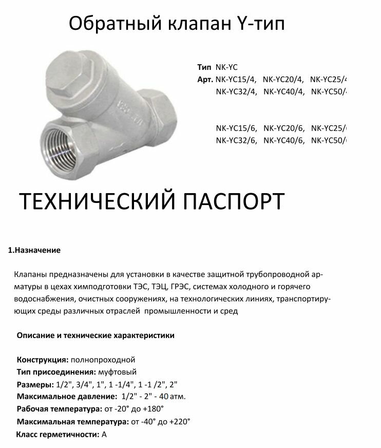 Ниже Вы можете прочитать отзывы на Обратный клапан муфтовый Y-тип нержавеющий, AISI304 DN25 (1"), (CF8), PN64, ознакомится с подробными характеристиками, посмотреть интересные обзоры и фотографии на Обратный клапан муфтовый Y-тип нержавеющий, AISI304 DN25 (1"), (CF8), PN64.