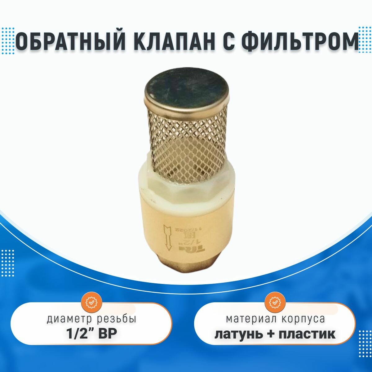 Купить Обратный клапан c фильтром-сеткой 1/2" ВР, латунный, с пружинным механизмом
