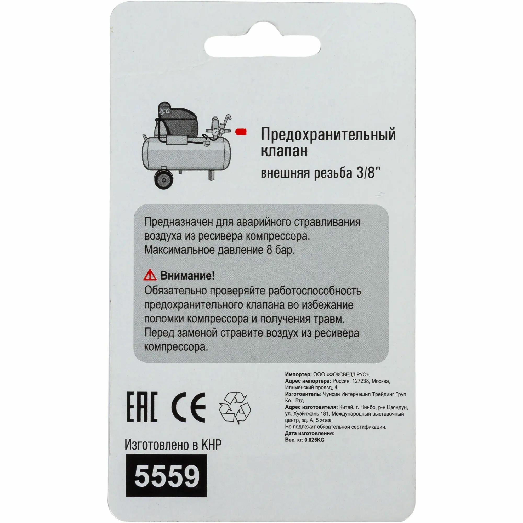 | Дополнительная информация | Предохранительный клапан 3/8 дюйма |