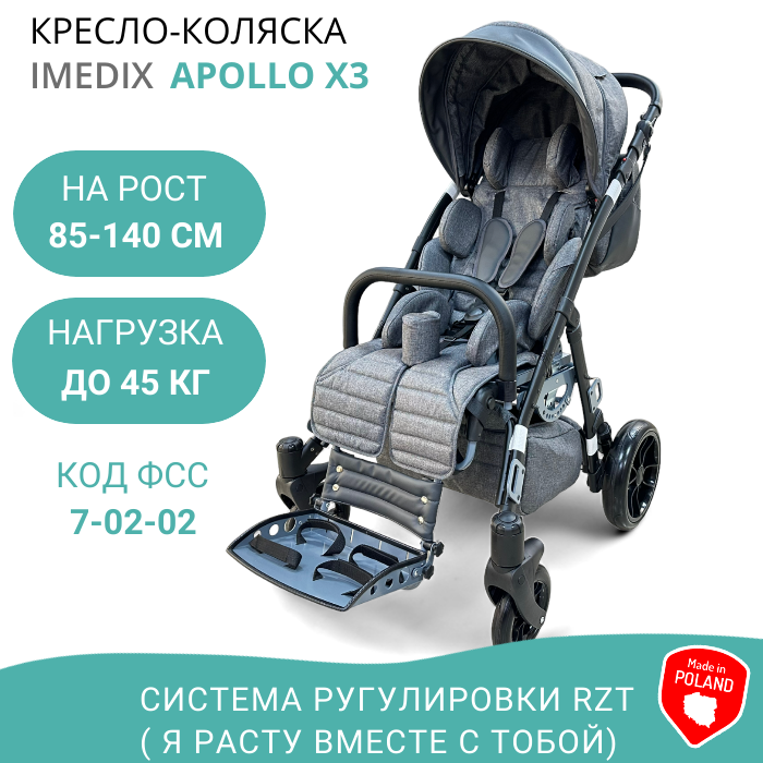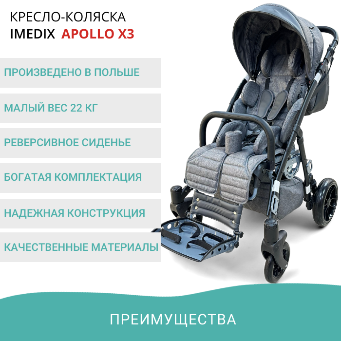 IMEDIX Коляска инвалидная для детей с ДЦП Apollo X3, Цвет Серый меланж интересное: